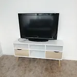 Boligen har tv, et tekøkken og en spiseplads på værelserne.